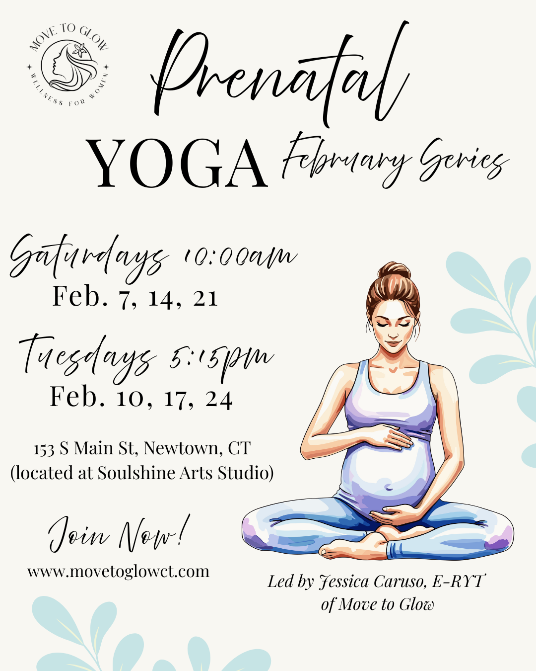 Movement & Mindfulness Techniques to connect to your mind, body & breath during this incredible time of life. Classes meeting on Tuesdays, February 10, 17, 24 at 5:15pm, and Saturdays, February 7, 14, 21, 10:00am, $75 per series or attend both for $140.